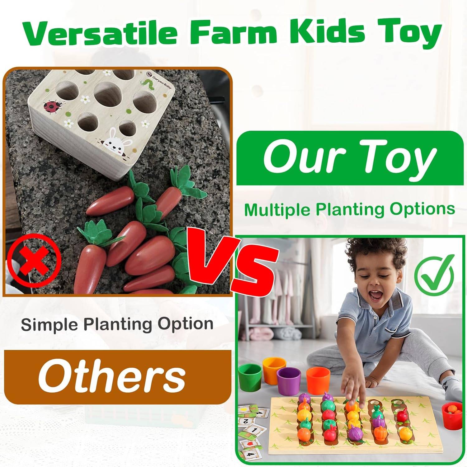 Safe And Comfortable Toy- Lauon montessori fruits and vegetables farm game set is made from high quality wood and plastic with a hard texture and smooth edges.