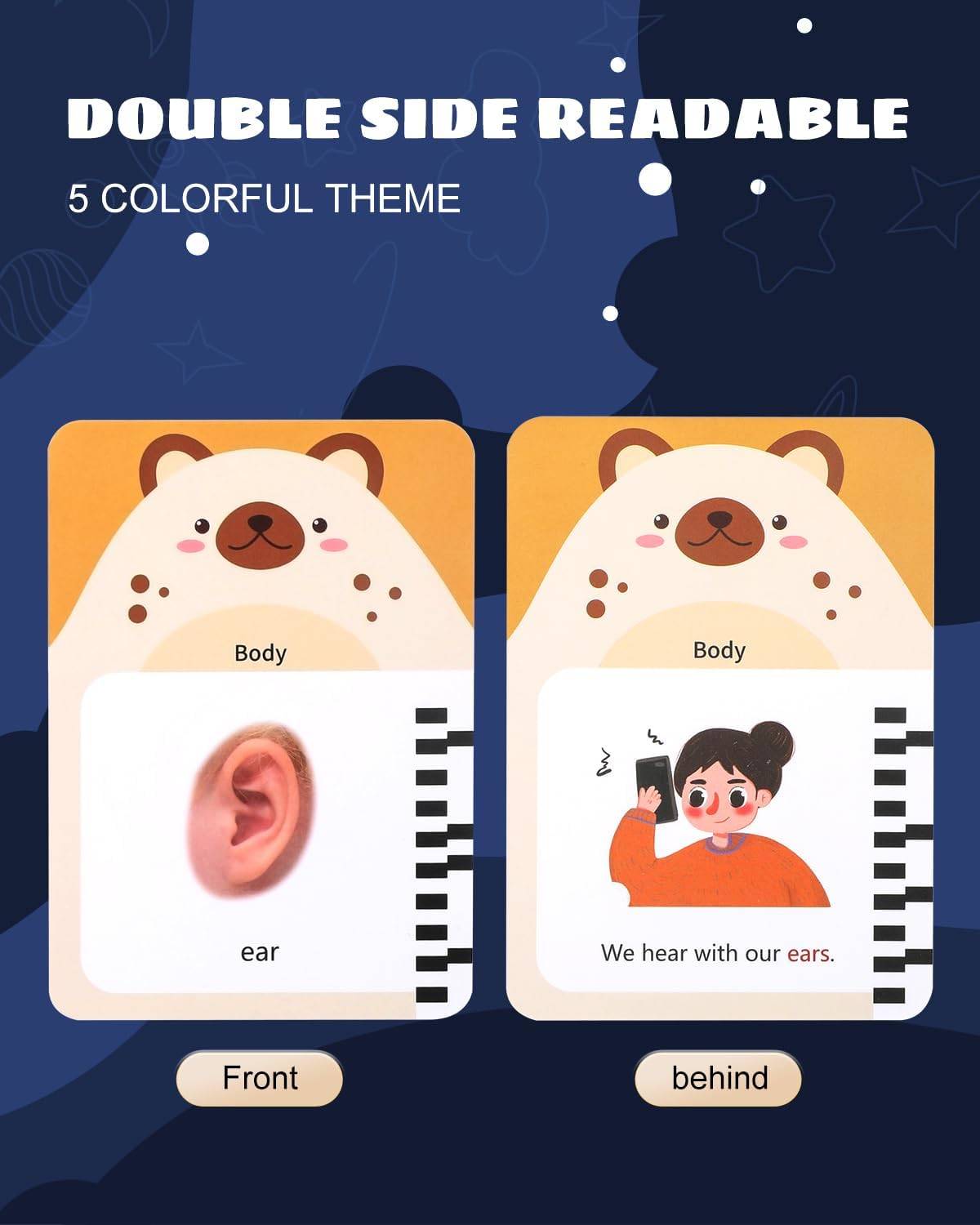 [ 144Pcs Cards Double Side Readable] Each card has single "word" side and "sentence" side. Learn the pronunciation first and then understand it. A classic application of montessori educational theory.